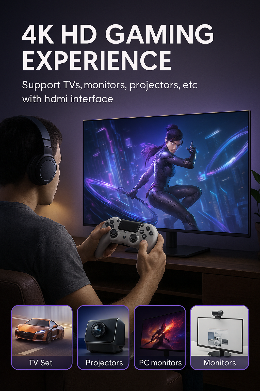 Compatibilidad: Funciona con TV, PC y otros dispositivos con entrada HDMI. Plug & play — conecta y juega.